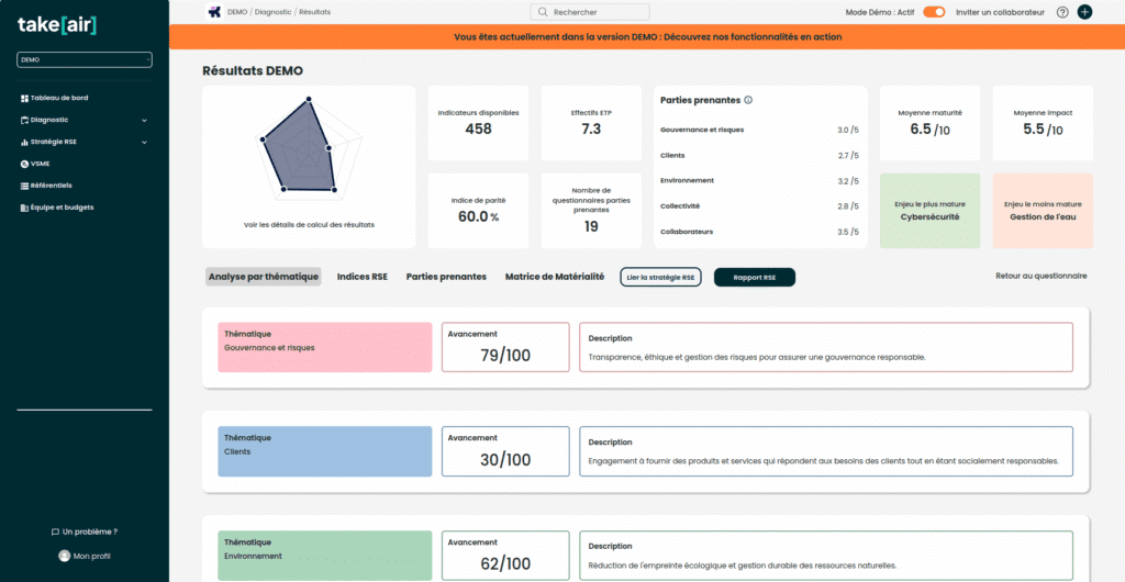 Le logiciel vous aide à mesurer, piloter et documenter ces sujets sur un même espace.